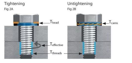 但是,在擰松時,墊圈的凸輪面之間發(fā)生滑動,很大程度的降低摩擦力。